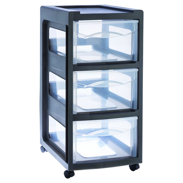 Homz 3 Drawer Wide Cart With Casters Wheels Black Frame With Clear Drawers Set Of 1 Walmart Com