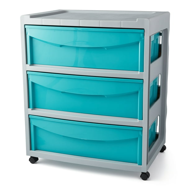 Mainstays Medium 3 Drawer Mint Plastic Storage Cart Walmart Com